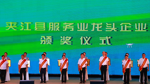 夹江县委副书记、县人民政府县长漆宾宣读了《关于表扬夹江县十大优秀服务业企业的通报》,相关领导为夹江县天福观光茶园有限公司等企业颁奖。据悉,此次获奖的十家企业在挖掘城乡居民消费潜力、培育消费亮点、活跃节日市场、打造夹江特色美食、地标餐饮品牌等方面做出了积极的贡献。