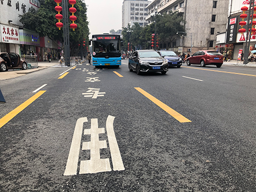 路面上,用黄色标线施划出的公交专用道格外引人注目。据该工程相关负责人介绍,这是乐山首条公交车专用道,将采用限时通行,该车道在7点至9点、17点至19点之间,仅限于公交车通行。公交车专用车道投用后,将有序规避社会车辆,在上下班高峰期,公交车在自己专用的车道上畅行无阻,将提升公交准点率,增强公交吸引力,让更多市民选择公交出行,上班、上学不迟到。公交车专用道将在完善相关的交安监控抓拍系统后正式启用。