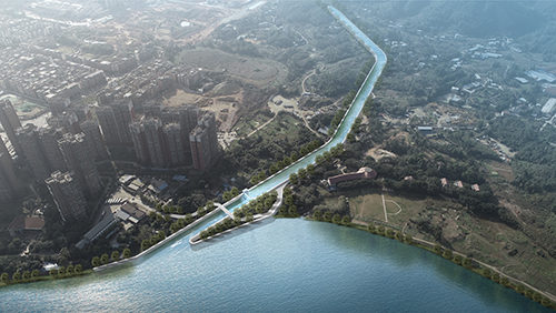 竹公溪,一条流经乐山城区的溪流,自然景观优美,人文积淀深厚,已成为市民娱乐休闲之地。但随着城市化进程的加快,竹公溪防洪排涝能力呈现严重的瓶颈和短板。受2019年和2020年盛夏暴雨的影响,河水暴涨,沿岸城区大片淹没,洪涝灾害损失惨重。竹公溪分洪道项目将通过“上蓄+中分+下排+口闸”实施竹公溪防洪排涝综合治理,在提升防洪排涝能力的同时,着眼生态景观的打造,进一步提升竹公溪流域的人文体验。