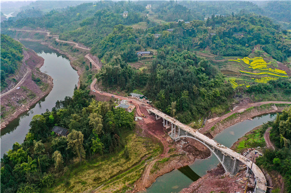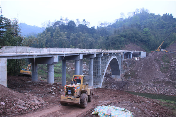 “环湖路沐溪标段,现在路基已全面完工,桥梁工程已完成90%,预计3月底桥梁工程全面完工,4月进入路面施工,力争4月底主体全面完工。”金王寺库区移民后扶环湖路沐溪标段项目技术负责人贺显斌说。