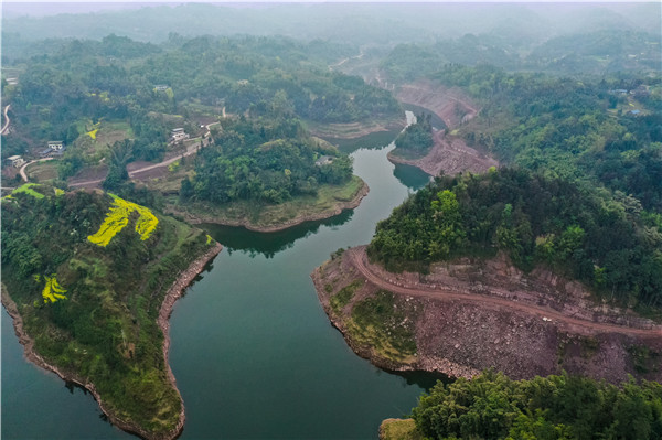 站在桥上放眼望去,一条碎石路沿库区延伸,一边是村庄茂林,一边是湖光山色。极目远眺,万顷碧波之上,道路蜿蜒穿梭,时而山丘林地,时而岛屿湿地,时而菜地果园,风光宜人,美不胜收。
