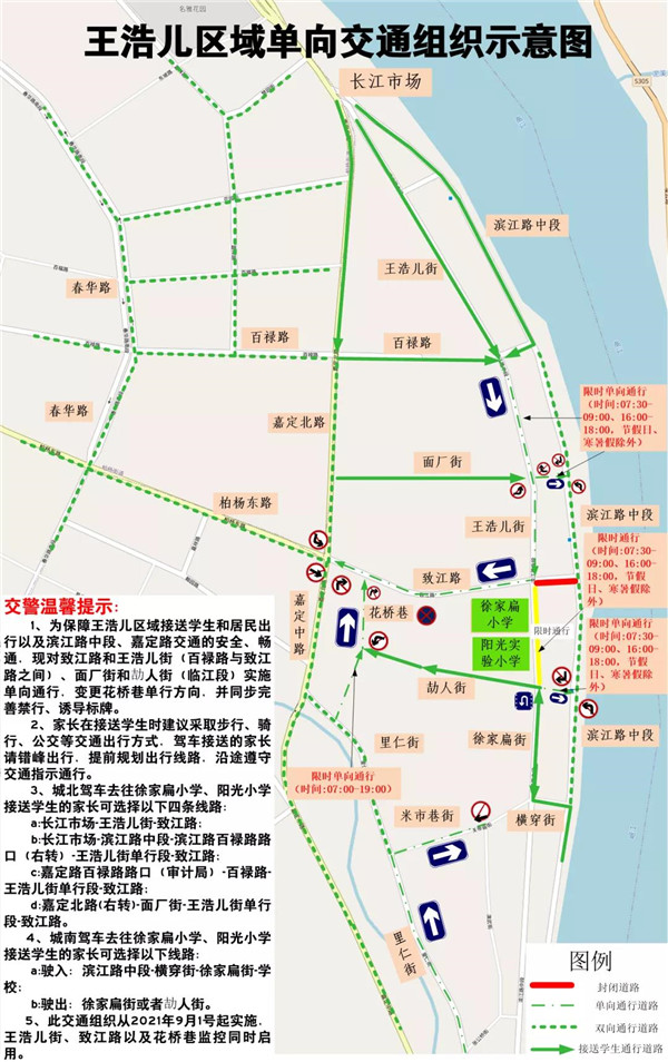 9月1日起,王浩儿部分路段将实施限时单向通行。
