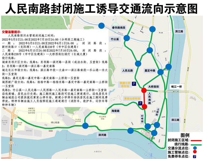四川新闻网消息 (李薪 文/图) 4月25日,四川新闻网从乐山城投集团获悉,为提升老城区雨污水管网排水功能,乐山中心城区人民南路新村街路口(兑阳湾)至大桥西街红绿灯(长城大厦)将于5月5日起进行分段实施雨污水管网改造,施工区域将进行全封闭施工,施工路段将采取交通管控措施。