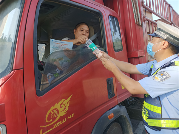 嘱咐一句关怀。全市路面执勤交警积极主动关心广大驾驶人的行车安全,为他们送上一句提醒话、祝福话,询问驾驶人的身体状态,提醒驾驶人晴热高温天气下要注意行车安全,严守交规、谨慎驾驶、注意防暑。