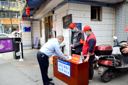 四川新闻网成都4月1日讯(饶芸瑛 袁兴宇)早春三月,乍暖还寒。中铁二局装修公司成都项目经理部团支部的志愿者服务队的队员们早早赶往社区内的小区疫情防控卡口,志愿执勤管控,协助社区工作人员在小区出入口做好疫情防护知识宣传、出入人员登记、体温检测等工作,并帮助社区进行消毒等疫情防控工作。志愿者们贴心、温馨、细心的举动赢得了社区工作人员的一致认可。