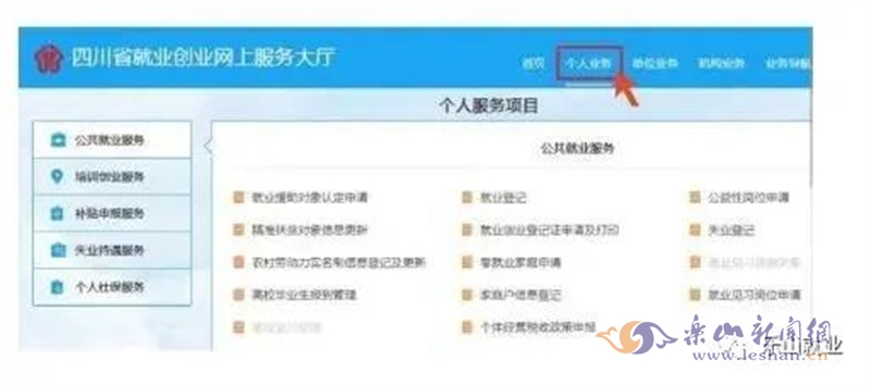 1.登录四川省就业创业网上服务大厅(网址:http://119.6.84.89/)选择“个人业务”。
