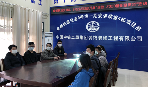 四川新闻网成都4月8日讯(高小蕴)草长莺飞,又是一年清明时,清明忆英烈,英雄足迹长。近日,中铁二局装修公司成都轨道交通8、9号线项目部组织开展“致敬·2020清明祭英烈”活动。