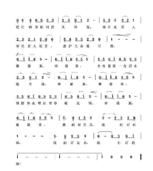 四川新闻网乐山4月11日讯(本史巫果)“有一种勇敢大爱在心扉,逆行的身影对抗风和雷。你不是亲人,却比亲人还亲,救护生命最可贵。谁最累,谁最美,舍身报国一身汗水湿衣背;谁最累,谁最美,满腔热血唱出青春最无悔。谁最累,谁最美,我的好兄弟,我的好姐妹……”最近,一首由徐环宙作词,谷玉梅、刘续红作曲,苏都阿洛深情演绎的战“疫”歌曲《我的好兄弟,我的好姐妹》,唱响神州大地大江南北,深受网民和歌迷的喜爱和好评。
