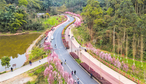 在嘉州绿心公园,梅花、桃花、樱花接连不断。进入4月,绿心公园大片紫色的鼠尾草和粉色的蔷薇花让人流连。市民朱小姐在外地求学,往年初春就已返校,“今年因为疫情待在家乡,正好看看绿心的春天。”朱小姐告诉记者,从绿心公园重新恢复开放到现在,白天赏花、晚上看萤火虫,她已经和家人来了好几次绿心公园,记录这个特殊的春天。此外,市中区文体旅游局和嘉和国资公司在嘉州绿心公园共建海棠书屋,为市民游客提供闲坐、休息、阅读和借阅书籍的休闲驿站,让书香与花香交汇融合。据了解,书屋最大亮点是配备了不少乐山非遗画册、嘉州美食地图、乐山旅游宣传册等嘉州文化类书籍,让市民游客有一个读懂“嘉州”,畅谈“嘉话”的闲趣之所。