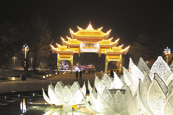 天下名山牌坊夜景 峨眉山旅游股份有限公司供图