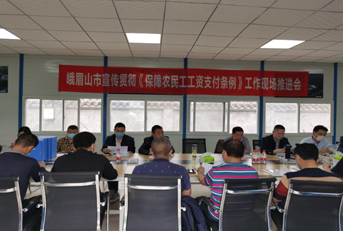 一是现场组织学习《保障农民工工资支付条例》。峨眉山市峨山片区在建工地恒大、璞园、见山府等10余家建筑公司代表、农民工代表等齐聚峨眉山市人民医院整体迁建项目部共同学习《保障农民工工资支付条例》,律师对重点条款进行了详细解读。