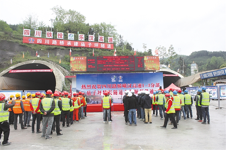 庙子坪隧道位于峨眉山市,为双洞单向隧道,宽10.25米,右线长3123米、左线长3155米。“庙子坪隧道所处地质情况较复杂,主要难点为全隧富水,存在多处溶洞,雨季施工深受涌水困扰。”四川乐汉高速公路有限责任公司党委书记、董事长蔡乐军告诉记者,开工后,建设者们克服了岩溶、涌水等重重阻碍,特别是疫情期间复工以来,不断加强防控、严格管理,制定了科学的施工方案,增加了30%的人员机具投入,让隧道右线提前顺利贯通。