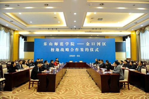 签约仪式上,胡丹、段俊辉共同签订了《乐山师范学院与金口河区校地战略合作协议》。根据协议,学校将选派专家在金口河区的人才培训、产业发展、生态保护、乡村振兴、社会事业发展以及文旅资源开发保护等方面提供智力支持与科技支撑,金口河区专列100万元经费保证校地合作项目有序开展。