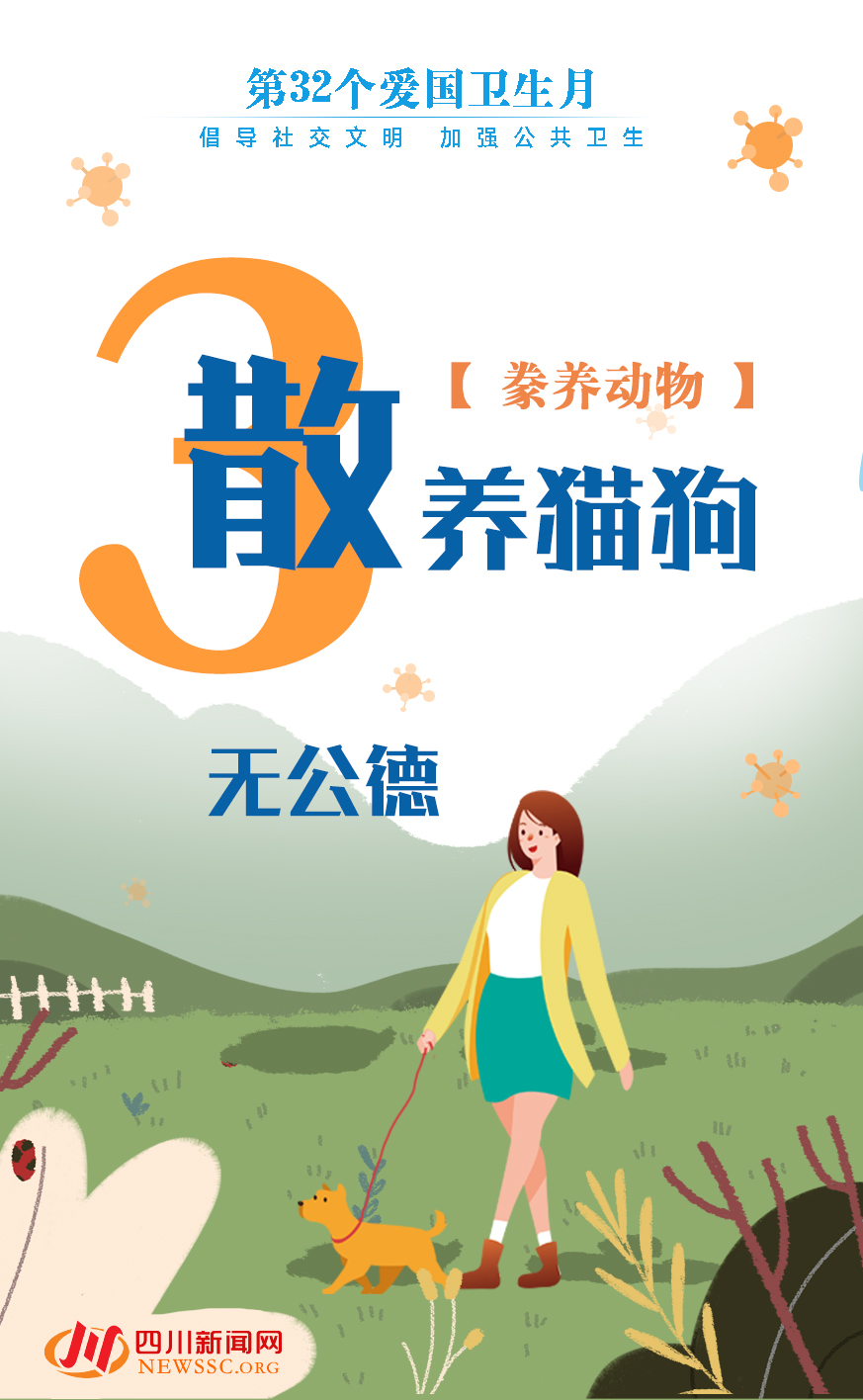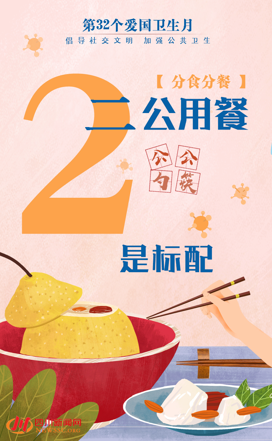 四川新闻网成都4月24日讯 今年4月是第32个“爱国卫生月”,活动主题为“防疫有我,爱卫同行”。与此同时,针对新冠肺炎疫情暴露出社会交往中存在的公共卫生问题,四川省也启动了“倡导社交文明加强公共卫生”倡议行动,并向社会公众发出倡议书,倡导大家在社交礼仪、行为规范、日常交往、爱护环境、卫生习惯、分食分餐、拒食野味、文明如厕、豢养动物、健康运动等日常生活的10个方面,养成文明的社交行为习惯。