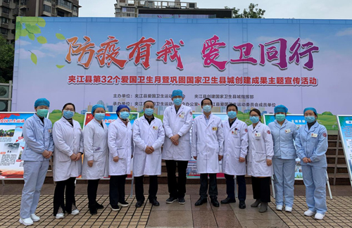 四川新闻网乐山4月28日讯 2020年4月是全国第32个爱国卫生月。为提升疫情期间人民群众的健康水平,普及健康的生活方式,让更多的居民了解防疫知识,关爱自身健康,4月22日上午,在夹江县卫生健康局的组织下,夹江县人民医院选派12名医疗、护理专家在夹江广场开展“防疫有我,爱卫同行”义诊活动。