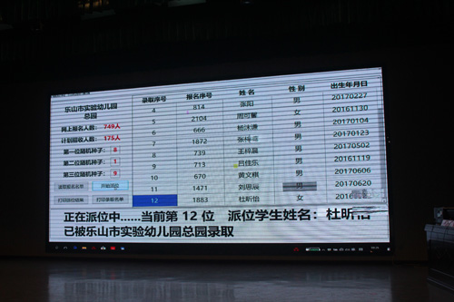 四川新闻网乐山5月22日讯(蒲晓君)5月22日上午10点,2020年乐山市市中区城区公办幼儿园招生“电脑随机录取”现场会在市中区青少年校外活动中心举行。在市、区教育局相关领导、100名幼儿家长代表、各幼儿园园长、教师和新闻媒体的见证下,乐山市实验幼儿园总园等8所幼儿园对成功报名的幼儿进行电脑派位。现场共计2049名幼儿进入“电脑随机录取”系统,最终成功录取825名幼儿。