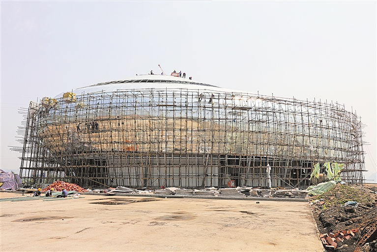 现场,鹅卵石外形的沫若剧场尤为吸睛。据沙湾区住房城乡建设局局长罗成银介绍,剧场参考沙湾本地大渡河鹅卵石外形进行塑造,寓意为“思想之石”,体现文坛巨匠郭沫若的坚毅品格和细腻情感。“剧场建筑面积约9800平方米,座位数约500个,预计6月中旬全面完工。”罗成银说,届时剧场将通过声光电技术呈现《少年郭沫若》音乐剧,讲述少年郭沫若的成长故事,弘扬沫若文化,传承沫若精神。