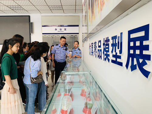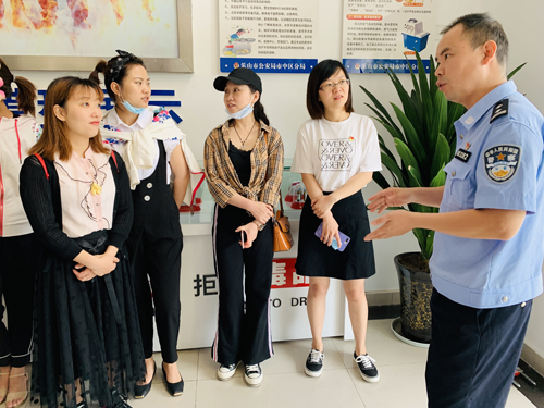 派出所副所长凌巍与社区民警赵泽亮给来所参观的教师讲解了什么是毒品、毒品的种类、危害及如何防范等禁毒知识,同时希望每位幼儿教师可以把毒品危害知识传达给每一位小朋友及他们的家人。