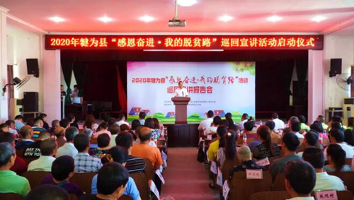 据了解,由县委宣传部、县脱贫攻坚办主办,伊米阳光超市、犍为县志愿爱心协会承办的2020年犍为县“感恩奋进·我的脱贫路”巡回宣讲活动在罗城镇举行首场报告会后,将于近日分赴全县各镇进行宣讲。(犍为县融媒体中心)