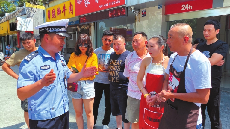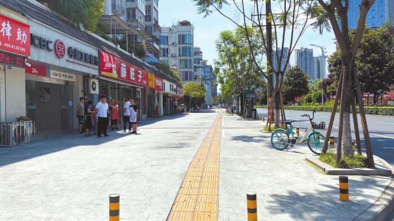 在春华路中段,信息路至罗槽巷之间约200米长的人行道设置了隔离桩,禁止机动车驶入人行道,原有的倾斜式停车位已取缔。在现场,一些商家向民警反映,停车位取缔后,顾客、办事人员停车不便,商家生意受到一定影响,而该路段人行道,宽度约有8米多,希望能够恢复设置停车位。
