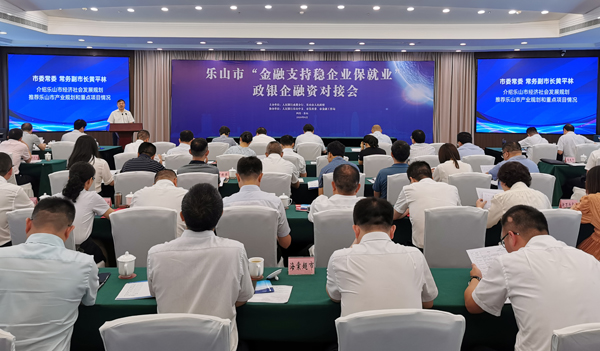 四川新闻网乐山6月10日讯(李薪 文/图)6月10日,乐山市“金融支持稳企业保就业”政银企融资对接会在乐山金海棠酒店召开。会上介绍了乐山市经济社会发展规划,推荐乐山市产业规划和重点项目情况,并进行现场签约。
