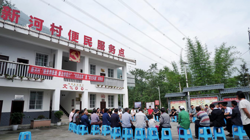 同一时间,在四川省乐山市金口河区共安彝族乡新河村便民服务点的院子里,主持人正在向参会村民通报共安彝族乡2020年上半年纪检监察工作情况,再由村党支部书记介绍村情村貌、脱贫攻坚和产业发展等重点工作,这也是在村级建制调整后,村里第一次开办“阳光问廉”坝坝会,新成立的新河村地域面积大、居住分散、人口众多,相应的民生问题也不在少数。
