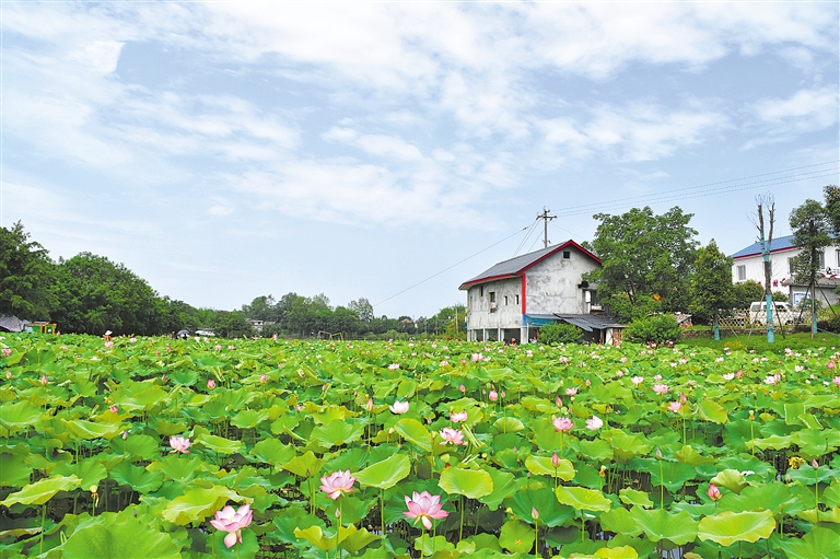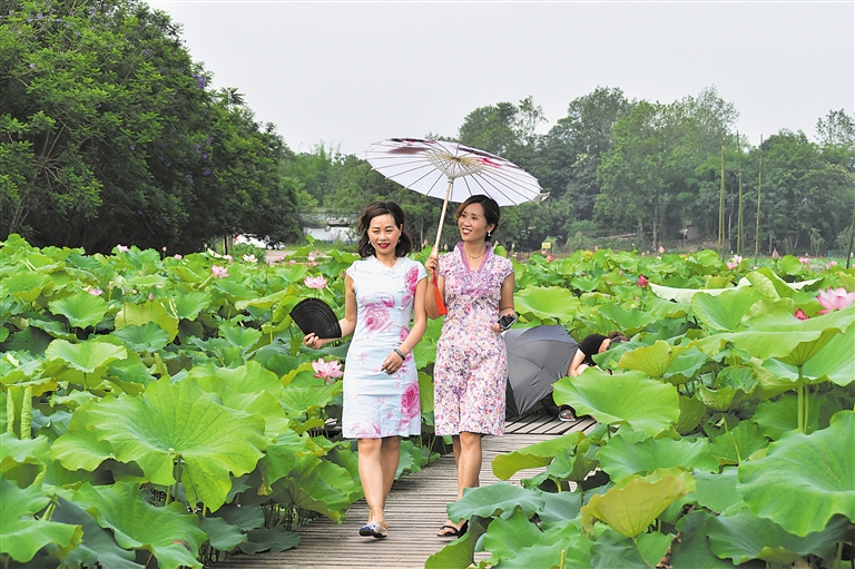 近日,五通桥区牛华镇燕山村400多亩荷花次第开放,吸引了不少当地群众和慕名而来的周边游客前来赏花游玩。