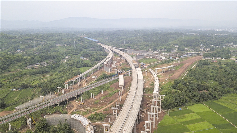 正在建设中的犍为枢纽互通,是仁沐新高速在犍为境内的重点工程,让仁沐新高速与乐宜高速形成交叉,实现两条高速公路之间的快速转换。6月10日,记者从施工现场获悉,目前犍为枢纽互通的下部结构施工已全部完成,预计9月底主体完工。