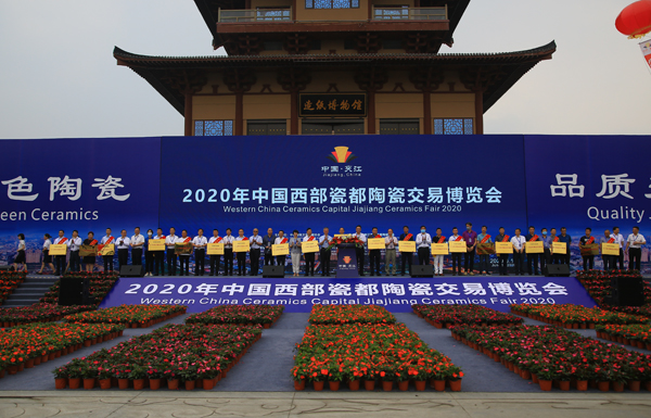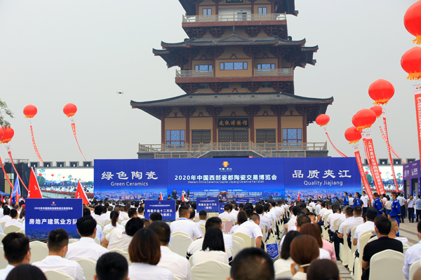 四川新闻网乐山6月12日讯(杨涛 文/图)6月12日上午,2020中国西部瓷都陶瓷交易博览会开幕式在四川夹江县世遗广场盛大开幕。本届陶博会以“绿色陶瓷 品质夹江”为主题,有力推动夹江陶瓷高质量发展,集中展示品牌打造、规模发展、科技创新和文旅融合的“夹江模式”。
