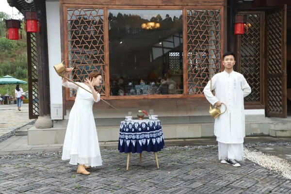 仪式后,嘉宾们一行先后参观了非物质文化遗产体验区、藏羌彝特色文化展示区和夹江本土非遗展演,参观了东风堰—千佛岩景区。