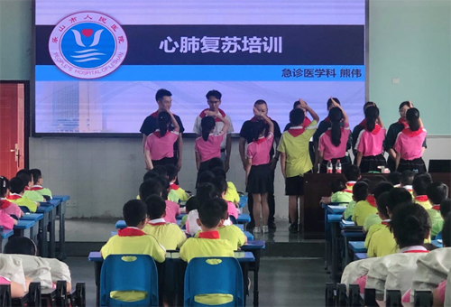 四川新闻网乐山6月18日讯(宋心瑶)近日,乐山市人民医院急诊医学科“红贝壳”团队走进柏杨小学开展"珍爱生命 健康成长"急救自救知识讲座,并现场演示心肺复苏实践操作。