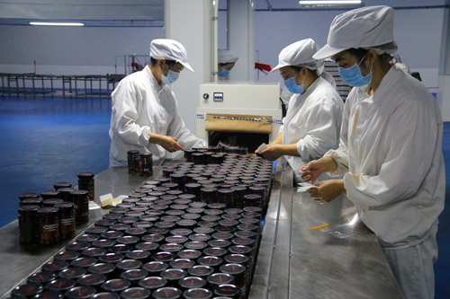 在调味品精深加工车间里,机器轰鸣,工人们忙碌而有序地抓紧熬制原料,对产品进行分级、装罐、称重,生产线运转不停,呈现出繁忙红火的景象。公司针对疫情带来的不利影响,采取措施积极应对,及时调整经营业务,加强与供应商、物流、客户的沟通,确保生产经营正常进行。“截止目前,我们所需的生产原料、包装材料供应充足,公司正开足马力生产,尽最大努力满足市场和消费者需求。”金惠晨达农业有限公司副总经理覃勇说道。