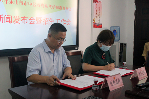 会上,市中区教育局与世纪英才幼儿园、花城幼儿园等18个承接主体代表签订购买服务合同。随后,还发布了招生信息,并提出招生工作的相关要求。