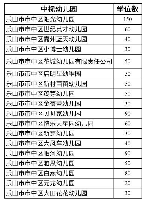 据了解,政府购买学位招生对象为具有海棠街道、通江街道、绿心街道(不含罗李坝村、张徐坝村),以及大佛街道的碧山路社区、龙泓路社区、篦子街社区、大石桥社区所辖行政区域户籍的3—4周岁(出生日期为2016年9月1日至2017年8月31日,含2016年9月1日和2017年8月31日)的,且未被市中区城区公办幼儿园录取的适龄幼儿;符合《军人子女教育优待办法》规定的现役军人适龄子女;符合《乐山市服务优秀高层次人才暂行办法》规定的优秀高层次人才适龄子女;符合《进藏干部职工子女内地就学享受当地生源同等待遇的意见》规定的适龄子女;直接参与救治新冠肺炎患者的一线医务工作者和乐山市支援湖北医疗队人员子女按照相关政策和规定执行。
