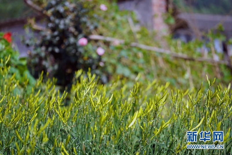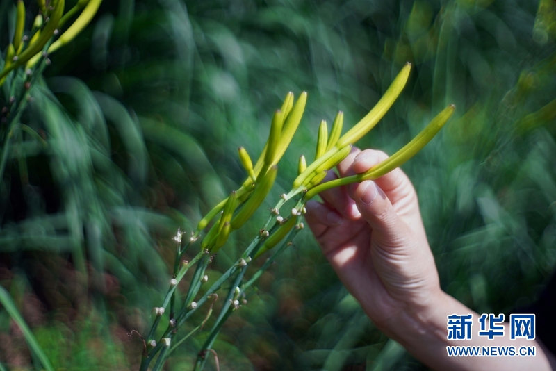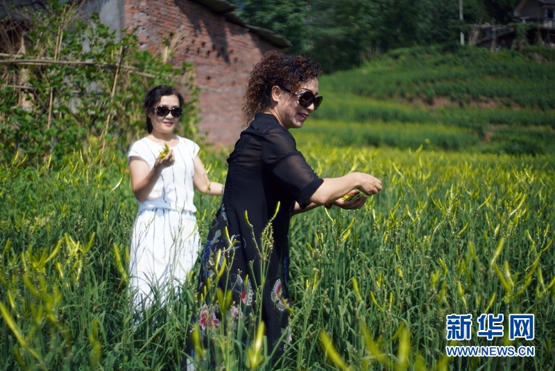 黄花种植带动乡村旅游,游客在体验黄花采摘。