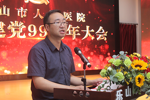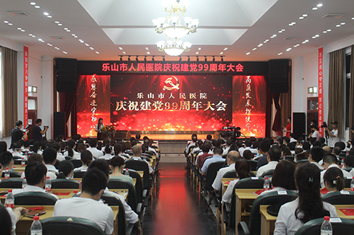 四川新闻网乐山7月1日讯(蒲晓君)为隆重庆祝中国共产党成立99周年,持续巩固深化“不忘初心、牢记使命”主题教育成果,提升医院党建工作质量,6月30日下午,乐山市人民医院隆重举行庆祝建党99周年大会。乐山市卫健委党组成员、副主任曾伟出席会议并讲话。医院党委书记易群等在家党政班子成员、党员代表、老专家代表、民主党派代表、中层干部和受表彰人员共计250人参加会议。庆祝大会由医院党委副书记金锋主持。