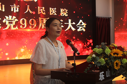 会上,市卫健委党组成员、副主任曾伟代表市卫健委向医院及全市医疗战线共产党员致以节日的问候!向辛勤工作在救死扶伤一线的全市医务工作者表示衷心感谢并致以崇高敬意!他谈到,在抗击疫情中,市人民医院作为乐山区域定点医疗机构、城南传染病区作为救治患者的主战场,医院党委带领全院干部职工冲锋在前,奋战在抗“疫”一线,实现了乐山患者“零漏诊”“零死亡”、医护人员“零感染”的阶段目标,为守护家乡人民的生命安全和健康,做出了乐医人的担当和使命。希望医院全体干部职工紧扣全市目标任务,一手抓疫情防控、一手抓复工复产,加快推进医院高质量发展,为助力乐山争创全省经济副中心和健康乐山建设贡献力量。