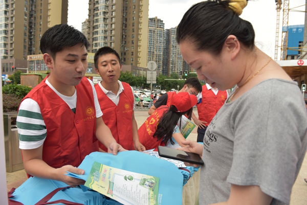 向市民免费发放环保袋、宣传资料