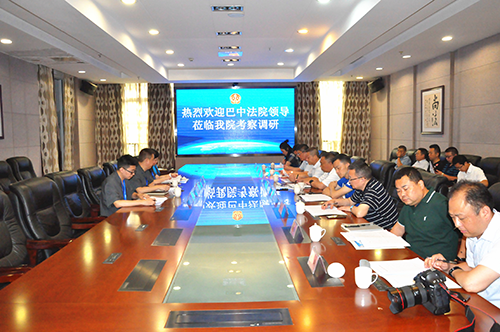 峨眉法院党组书记、院长伍勇等陪同。徐文昌院长一行实地考察了峨眉法院诉讼服务中心、诉源治理中心、家事审判中心、院史荣誉室、文化展示区等区域,听取了讲解员的解说。