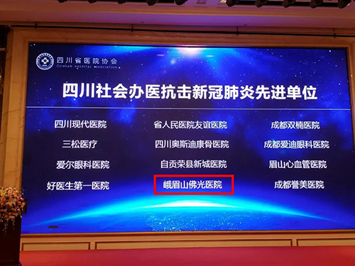 四川新闻网乐山7月10日讯2020年7月,峨眉山佛光医院被四川省医院协会授予“抗击新冠肺炎疫情先进单位”。