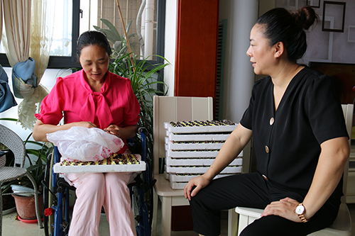 “原材料一直都是老板给我送到家里来,做好之后,他们又上门取回去,每次上门都会与我交心谈心,关心我的身体健康状况,同时还帮我申请残疾人辅助器具,真的非常感谢他们,重拾了我对生活的信心。” 徐仕珍告诉笔者,2012年,因一场意外导致双腿残疾,经鉴定评为肢残一级,从此失去了行动能力,一直靠轮椅行走。去年,在帮扶责任人的帮助下,通过扶贫车间徐仕珍实现了居家灵活就业的愿望。