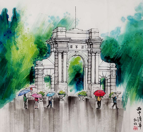 这组作品是来自乐山籍画家郭劲松的手笔。提起创作高校主题手绘作品的初衷,郭劲松说,“我是上世纪80年代的大学生,在送孩子入学川大报名时,看到周围充满朝气的年轻学子,想起自己也曾当过学生,感慨万千,就创作了《川大请别把我遗忘》,受到大家的关注后,又创作了30多所《四川高校》组画。这次创作的《北京高校》组画本来是为在“抗击新冠疫情”的特殊时期不能进校园的毕业生而作,眼看着大学报考招生正在如火如荼,算是为即将步入高校的新生的礼物吧,祝愿他们考上自己心仪的大学。”