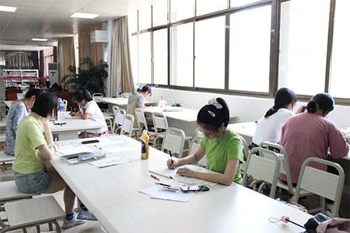 在众多的学习者中,有一部分市民是专门选择到图书馆学习和备考的。图书馆安静的学习氛围和丰富的书籍种类,成为了他们最佳的学习场所。刚大学毕业准备公务员考试的李阿艺认真地阅读《申论》,面前还摆着一本厚厚的《行政职业能力测验》。今年正在读高中的周兰和她的同学们正围绕在书桌旁边做暑期作业、写笔记。他们说在图书馆学习能静得下心来,还能查阅资料,可以更好的学习,效果比家里好。