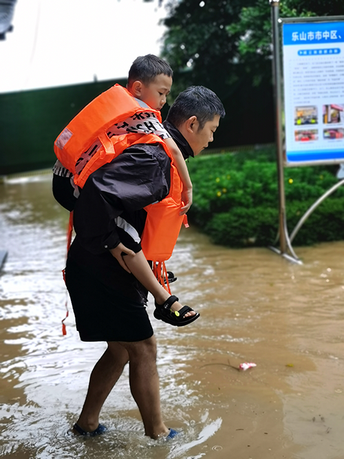四川新闻网消息(陈瑶 刘冉)2020年8月18日,受持续特大暴雨影响,乐山大佛景区遭受洪涝灾害。为全力保护人民群众和游客生命财产安全,大佛景区公安分局全体民辅警昼夜奋战一线,全力以赴投入抗洪抢险救灾工作。