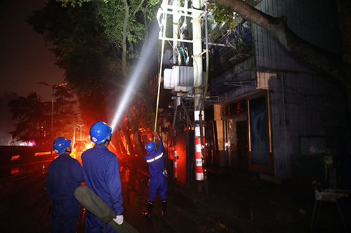 当晚,国网乐山供电公司集中力量重点对市委、市政府及110千伏阳光变电站滨江片区进行逐一检查、抢修,对具备条件的尽可能恢复其供电。