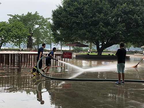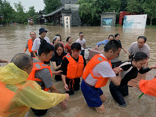 8月18日强降雨来临后,乐山大佛景区管委会按照乐山市防汛抗旱指挥部要求迅速开展住店旅客及景区经营户疏散工作,80名景区干部职工、公安民警冒雨在齐腰深的水中,经过近3小时的艰难奋战,将滞留景区的180名住店游客全部疏散至乐山大佛博物馆、管委会办公楼食堂等安全地带,并免费提供姜汤、牛奶、面包等食品。在岷江水位高出码头2米的极端危险情况下,70名景区干部职工不畏洪水、全程坚守游船,确保了27艘游船安全度汛,未发生一起跑船安全事故。同时,积极帮助景区范围内街道社区救援被困群众,共出动海事救援船100多趟次、救出群众150人,出动景区公安80警力、救出群众15人。