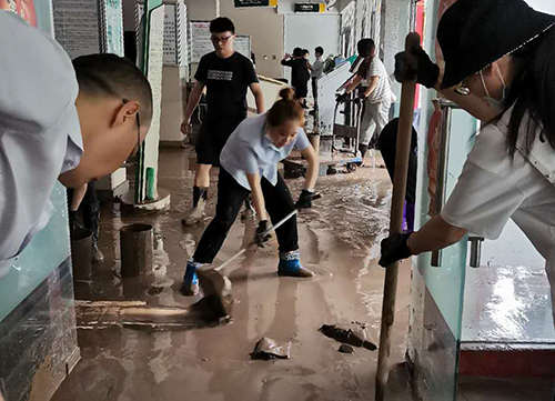 支行员工灾后清淤自救