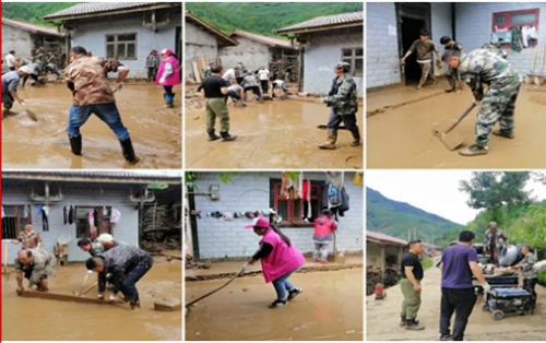 在救灾过程中,党员干部们始终铭记“为人民服务”的宗旨,充分发挥自身特点,有序不紊开展工作;男同志们负责重力活:搬家具、安发电机抽水、清理堵塞的沟渠、铲大块淤泥等;女同志们也是巾帼不让须眉,帮忙清扫小淤泥,提水等。