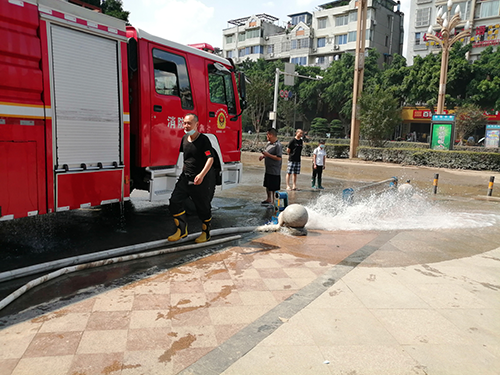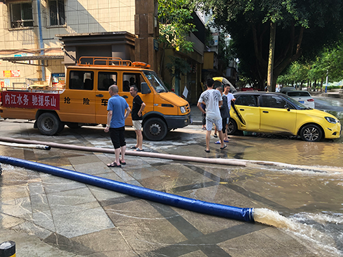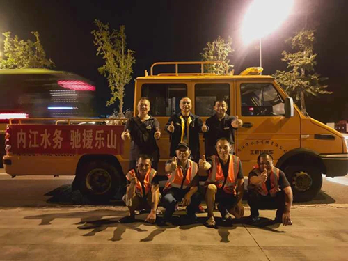 来自内江市水务有限责任公司的抢险救援队于19日晚上11点抵达乐山,与物业协会汇合后,立即加入了在海棠圣景小区的排涝工作。为了加快抢险进度,救援队不顾舟车劳顿,昼夜作业,队员们轮流值守。“我们19号晚上7点接到公司党委的通知,说乐山灾情严重,要我们组织救援队立即启程增援乐山。”该公司管网运行部经理李军介绍说,这里灾情比我们想象的严重,我们已经在海棠圣景排水16个小时,现在抽了三分之一的积水了。“为了加快速度,我们又向公司申请了一台发电车和三台潜水泵,现在已经在路上了,争取今晚完成海棠圣景的排涝抢险任务。”