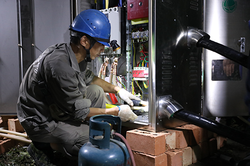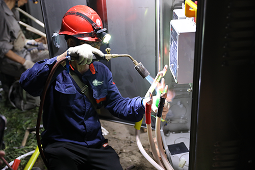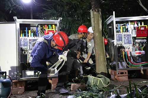 在上中顺小区,因该小区地下车库的积水仍然没有清除完,4台箱变被淹,导致该小区4个单元,1000余户家庭未恢复供电。不能等水抽干再抢修了,情况特殊,特殊处理。用电缆搭接街面的低压箱为居民提供临时用电。清理环网柜淤泥、除湿、铺设电缆、接电缆头...23日6时,乐山供电公司近70名抢修人员按照事先制定的解决方案迅速行动开始了抢修工作。经过13个小时的奋力抢修,当天19点40,上中顺小区恢复供电。